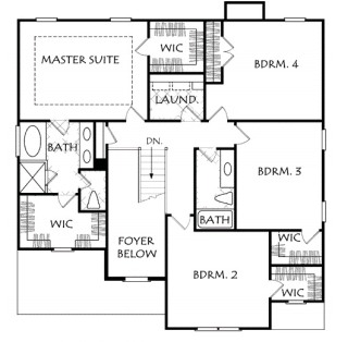 The second floor has all the bedrooms along with the laundry room. The master suite has two walk-in closets, so no need to share! The master bath has a double vanity with marble, a walk-in shower, and a garden tub. The two other rooms share a bathroom. There is also a guest suite with its own bathroom and walk-in closet. The Hawk comes equipped with a Total Connect Honeywell Security System from Holmes Electric plus many more standard features.